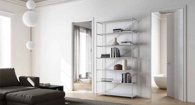 Piana Swing, characterized by the aluminum frame and double panes that fit the built-in handle, allows you to select the jamb that will be integrated into the wall in accordance with the stylistic needs of the project. The selection includes the traditional aluminum jamb, with glass/aluminum cable covers or with a flush-to-the wall effect (with plasterboard or wooden paneling), the flush-to-the wall jamb and the visible or recessed jamb. The handle comes in different versions.